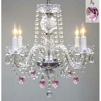 The number 1 chandelier is simply beautiful. Wrought iron crystal chandelier pink hearts country french white ceiling fixture. About this item pink chandelier for girls room: It will make her think of diamonds. 4.5 out of 5 stars (7) 7 product ratings.